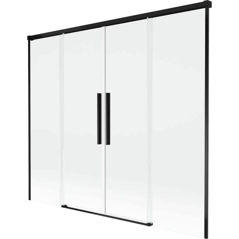 Technické údaje: Šírka: 180 cm Výška: 150 cm Typ: Dvojkrídlové Montáž: Univerzálny Typ: Pohyblivé/Posuvné Typ skla: Tvrdené Farba skla: Priehľadná Hrúbka skla: 8 mm Povrchová úprava: Čierna Profil: Hliníkový Povlak pre ľahké čistenie Možnosť Možnosť naklonenia dverí na čistenie siete Magnetický prúžok a elastomérové tesnenie, ktoré odvádzajú vodu Dva montážne systémy: - s profilom, ktorý umožňuje vyrovnanie nerovností stien - bez profilu v prípade dokonale rovných stien