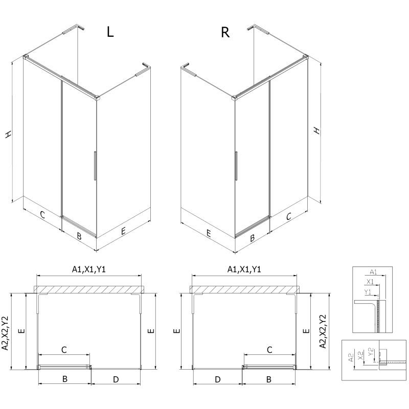 Špecifikácia produktu: Rozmer: 155x70 cm (dvere 155 cm, steny 70 cm) Výška: 200 cm Strana montáže: Univerzálny Vchod: Posuvné dvere Farba skla: Priehľadná Povrchová úprava: Kartáčované zlato Profil: Hliník Stabilizátor v tvare L: Nerezová oceľ Typ skla: úprava pre ľahké čistenie Možnosť nastavenia šírky Dva montážne systémy: - S profilom, ktorý umožňuje vyrovnanie nerovností stien - Bez profilu pre dokonale rovné steny Možnosť montáže na sprchovú vaničku alebo obklady Neviditeľný mechanizmus posuvných a dverných prvkov Vodítka s funkciou tlmenia zatvárania Posuvník zaručujúci tichý chod dverí odvádzajú vodu Hliníkový prah tesnenia dverí