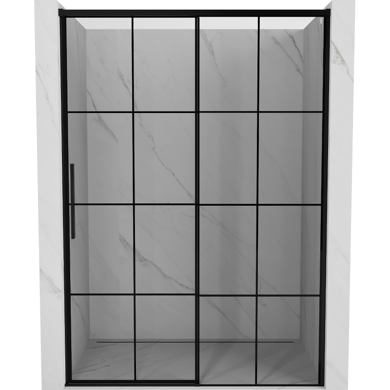 Špecifikácia produktu: Rozmer: 140x200 cm Strana montáže: Pravá Vchod: Posuvný Farba skla: Čierna mriežka Povrchová úprava: Čierna Profil: Hliník Typ skla: Tvrdené Hrúbka skla: 8 mm Povlak na jednoduché čistenie Možnosť nastavenia šírky Dva montážne systémy: - S profilom, ktorý umožňuje vy sprchovaciu vaničku alebo obklady Neviditeľný mechanizmus posuvného a dverného nastavenia Vodítka s funkciou tichého zatvárania Posuvník zaručujúci tichý chod dverí Možnosť vyklopenia dverí na čistenie kabíny Magnetický prúžok a elastomérové tesnenie, ktoré odvádzajú vodu Hliníkový prah tesnenia dverí