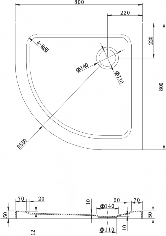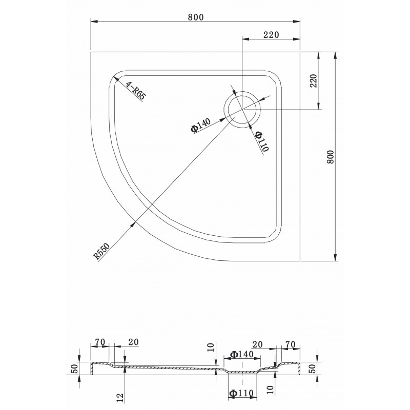 Typ: štvrťkruhový, tenký