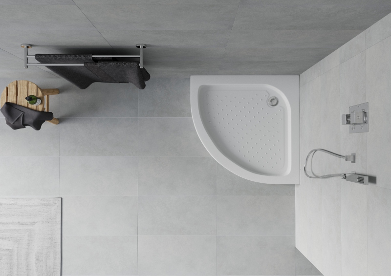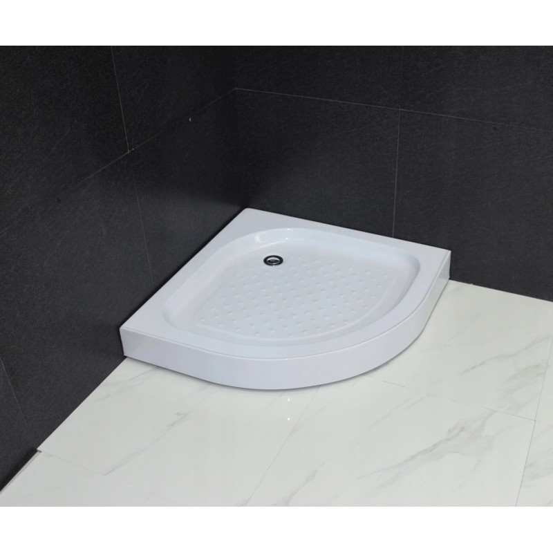 Mexen Flat polkruhová štíhla sprchová vanička 80 x 80 cm, biela, čierny sifón - 41108080B