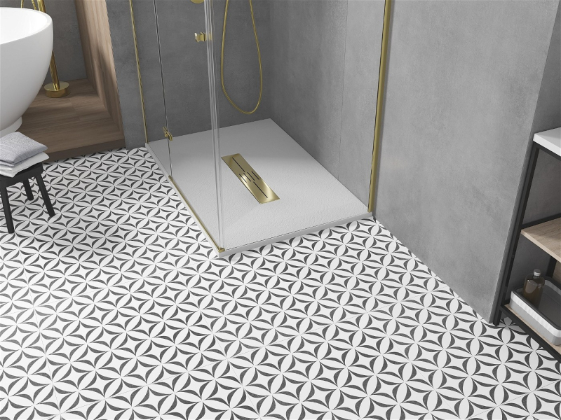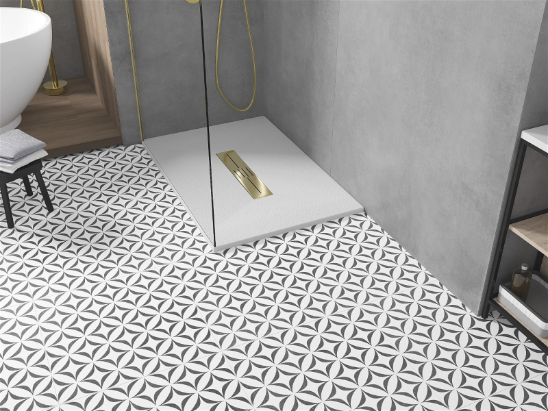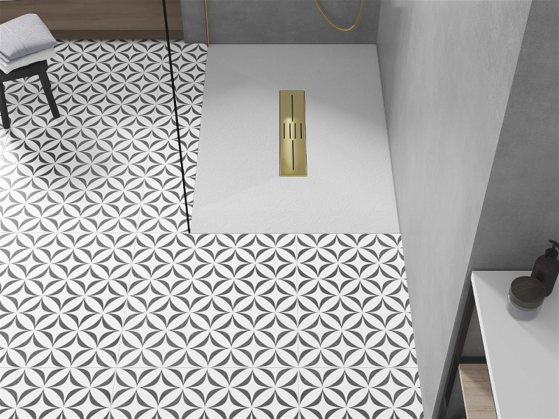 Mexen Toro obdĺžniková sprchová vanička SMC 140 x 70 cm, biela, zlatý kryt - 43107014-G