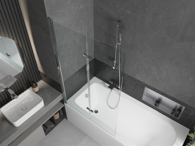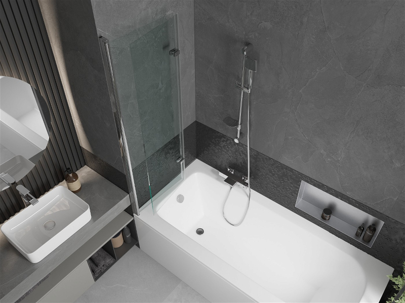 Mexen Vega obdĺžniková vaňa 160 x 70 cm s plášťom a 2-listovou zástenou 100 cm, transparentná, chróm - 550116070X9210020100