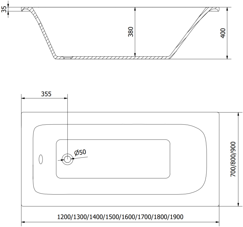 Rozmer vane: 160 x 70 cm