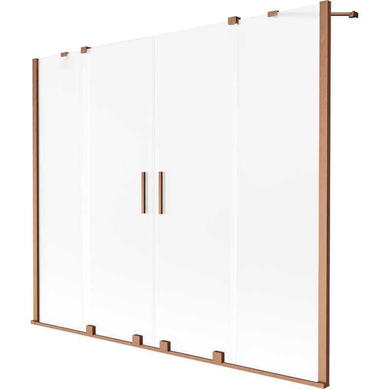 Technické údaje: Šířka: 180 cm Výška: 150 cm Typ: 2křídlé Montáž: Univerzální Typ: Pohyblivé/Posuvné Typ skla: Tvrzené Barva skla: Mléčné Tloušťka skla: 8 mm Povrchová úprava: Kartáčovaná měď Povlak pro snadné čištění Vyrovnání nerovností stěn Sada těsnění pro odvod vody
