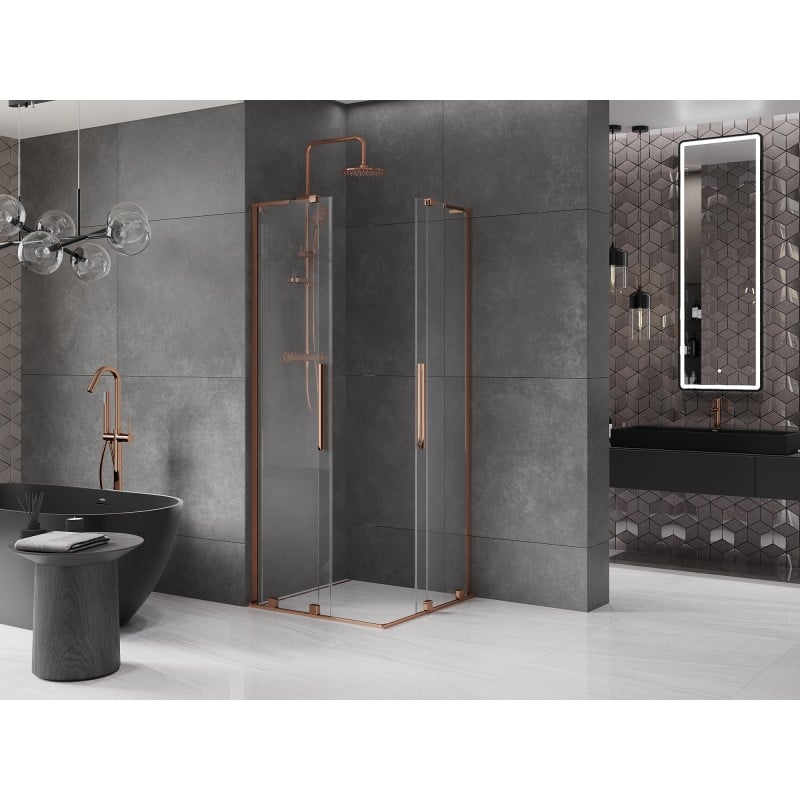 Mexen Velar L Duo posuvný sprchový kout 100 x 100 cm, průhledný, růžové zlato - 871-100-100-02-03-60