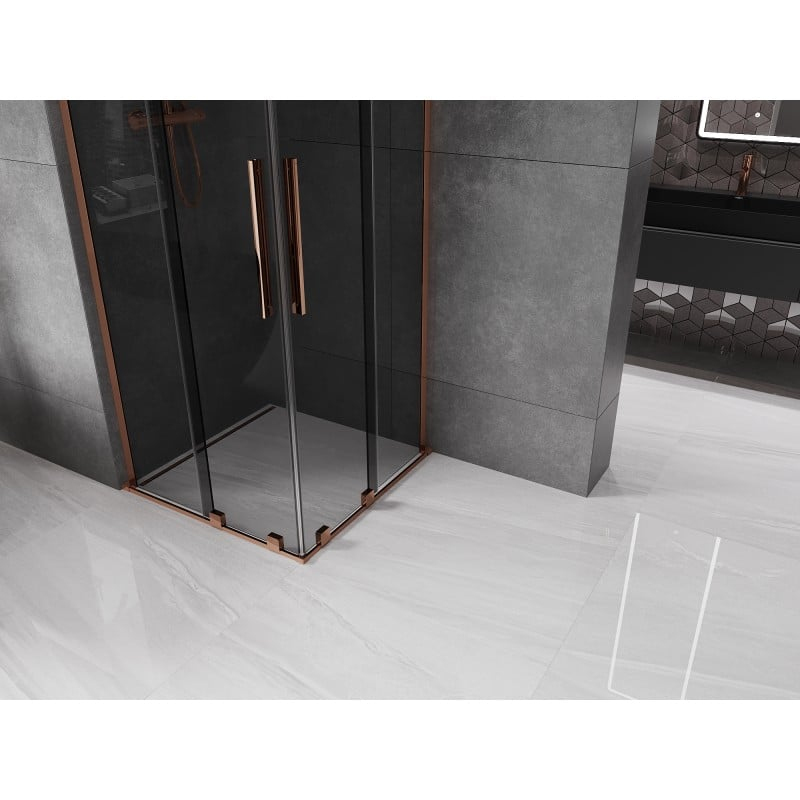 Mexen Velar L Duo posuvný sprchový kout 80 x 80 cm, grafit, růžové zlato - 871-080-080-02-43-60