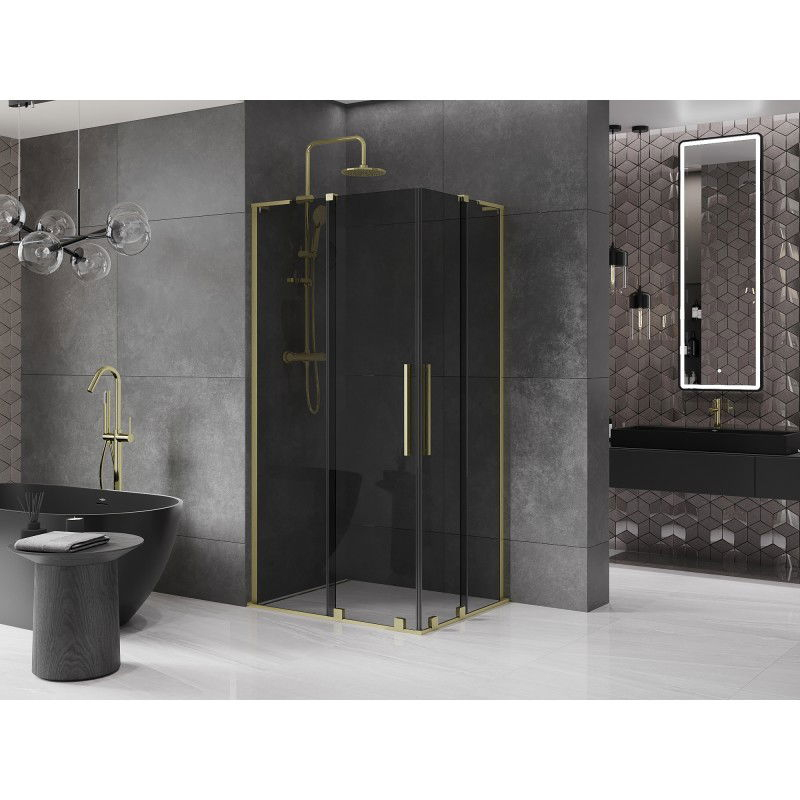 Mexen Velar L Duo posuvný sprchový kout 90 x 80 cm, grafit, kartáčované zlato - 871-090-080-02-43-55