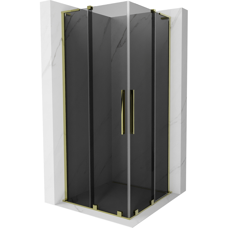 Mexen Velar L Duo posuvný sprchový kout 90 x 90 cm, grafit, zlatá - 871-090-090-02-43-50