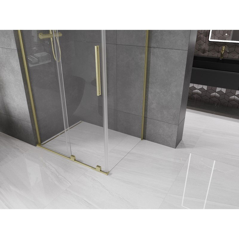 Specifikace produktu: Rozměr: 110x90 cm (dveře 110 cm, stěna 90 cm) Výška: 200 cm Montáž: Univerzální Vstup: Posuvné dveře Barva skla: Průhledná Povrchová úprava: Kartáčované zlato Typ skla: Tvrzené Tloušťka skla: 8 mm Profil: Hliník Stabilizátor úhlu L: Nerezová ocel Povlak pro snadné čištění Vyrovnání nerovností stěny Nastavení šířky Možnost montáže na sprchovou vaničku nebo obklady Jednoduché válečky nejvyšší kvality Nerezová rukojeť Sada těsnění pro odvod vody Hliníkový práh pro těsnění dveří