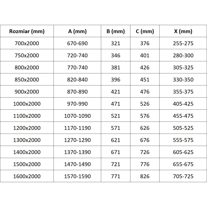 Specifikace produktu: Šířka: 110 cm Výška: 200 cm Montáž: Univerzální Barva skla: Mléčná Povrchová úprava: Černá Typ skla: Tvrzené Tloušťka skla: 8 mm Profil: Hliník Konzola: Nerezová ocel Max. délka konzoly: 120 cm Povrchová úprava pro snadné čištění Vyrovnání nerovností stěny Nastavení šířky Možnost montáže na sprchovou vaničku nebo obklady Nerezová rukojeť Sada těsnění pro odvod vody Hliníkový práh těsnění dveří