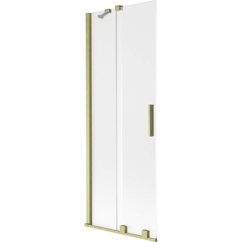 Technické údaje: Šířka: 75 cm Výška: 150 cm Typ: 2křídlé Montáž: Univerzální Typ: Pohyblivé/Posuvné Typ skla: Tvrzené Barva skla: Mléčné Tloušťka skla: 8 mm Povrchová úprava: Kartáčované zlato Povlak pro snadné čištění Vyrovnání nerovností stěn Sada těsnění pro odvod vody