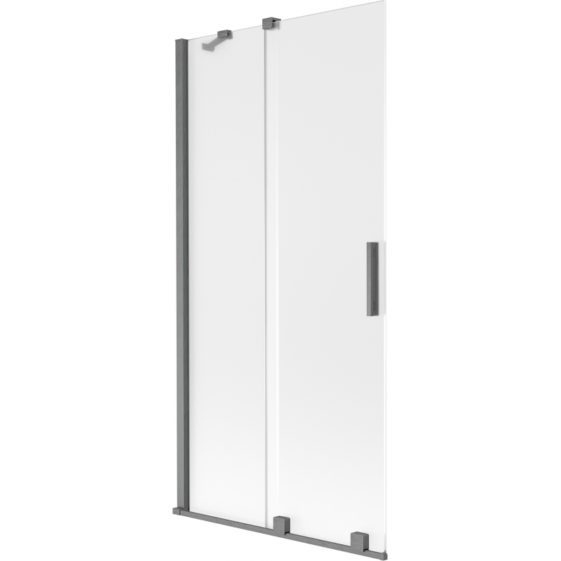 Technické údaje: Šířka: 95 cm Výška: 150 cm Typ: 2křídlé Montáž: Univerzální Typ: Pohyblivé/Posuvné Typ skla: Tvrzené Barva skla: Mléčné Tloušťka skla: 8 mm Povrchová úprava: Kartáčovaná šedá barva Povlak pro snadné čištění Vyrovnání nerovností stěn Sada těsnění pro odvod vody