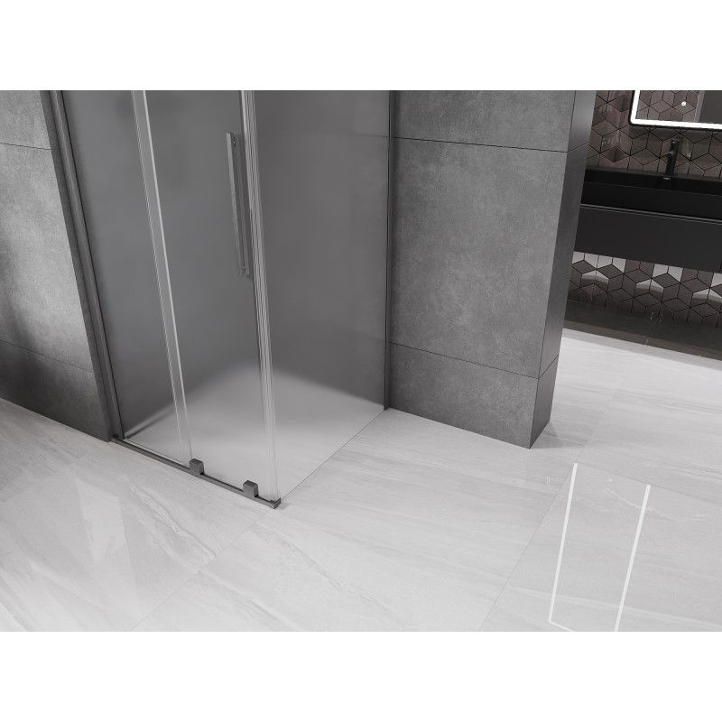 Specifikace produktu: Rozměr: 120x120 cm (dveře 120 cm, stěna 120 cm) Výška: 200 cm Montáž: Univerzální Vchod: Posuvné dveře Barva skla: Mléčná Povrchová úprava: Kartáčovaná šedá Typ skla: Tvrzené Tloušťka skla: 8 mm Profil: Hliník Povlak pro snadné čištění Vyrovnání nerovností stěny Nastavení šířky Možnost montáže na sprchovou vaničku nebo obklady Jednoduché válečky nejvyšší kvality Nerezová rukojeť Sada těsnění pro odvod vody Hliníkový práh těsnění dveří