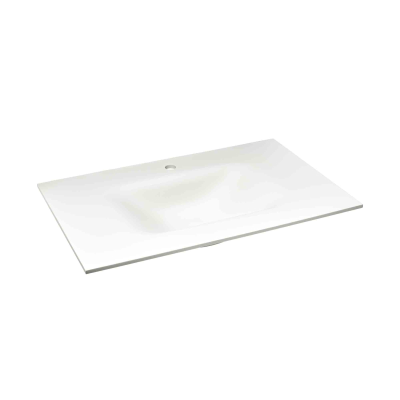 Nábytkové umývadlo s otvorom pre batériu uprostred. O rozmere 86x52,7x16,5 cm.