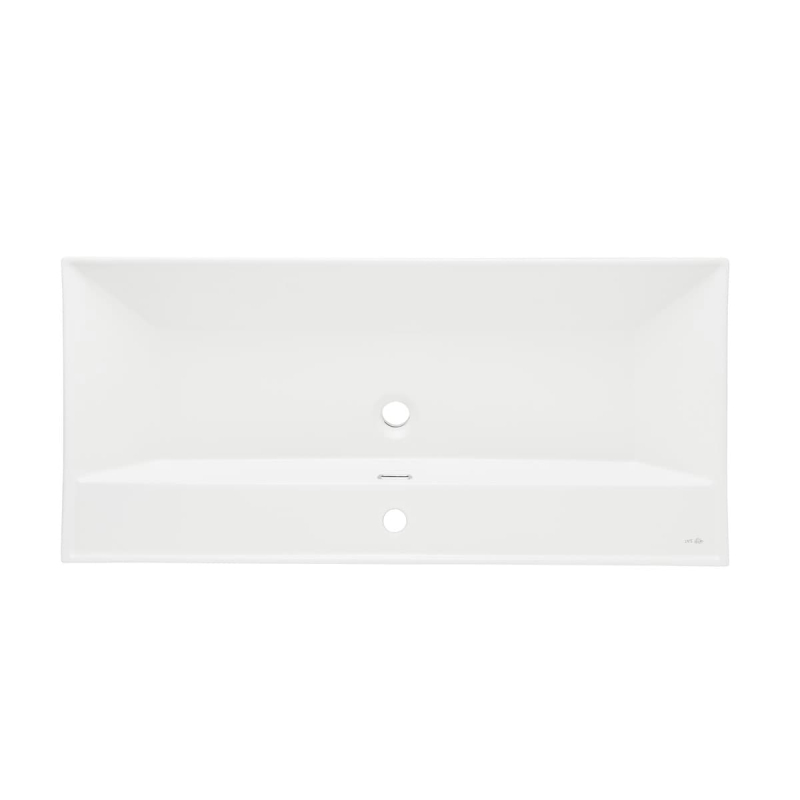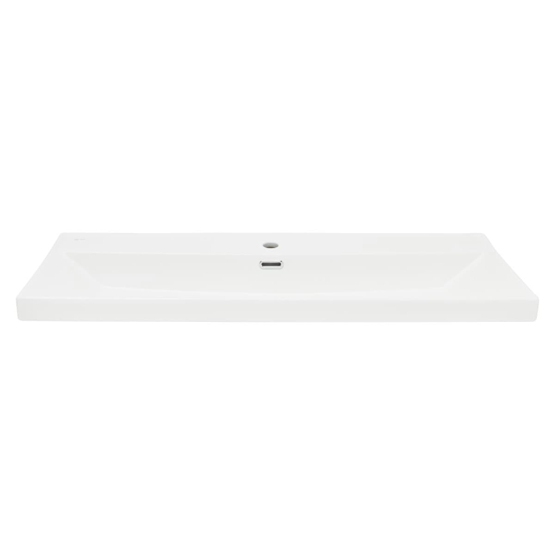 Nábytkové umyvadlo v matné bílé barvě s otvorem pro baterii uprostřed o šířce 101 cm a hloubce 46,5 cm. Balení bez sifonu a baterie.