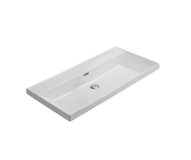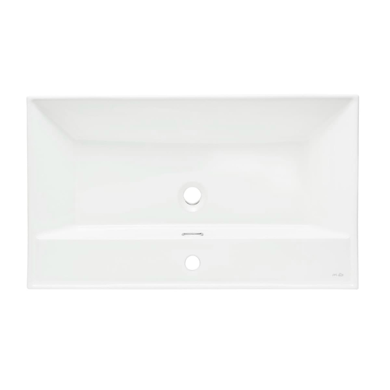 Nábytkové umyvadlo v bílé barvě s otvorem pro baterii uprostřed o šířce 81 cm a hloubce 46,5 cm. Balení bez sifonu a baterie.