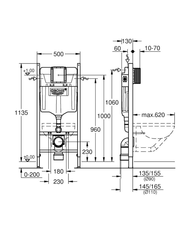 Vďaka systému GROHE QuickFix je možné inštalačný systém GROHE Rapid SL ľahko upevniť pred pevnú stenu alebo do drevenej steny. Na pripojenie vodovodnej prípojky, hadice a kontrolnej šachty nie je potrebné žiadne náradie. V prípade potreby je nutné na inštaláciu systému zakúpiť nástenné držiaky 3855800M. Oceľový rám disponuje nosnosťou presahujúcou 400 kg. Po montáži podomietkovej nádrže a závesnej toalety bude čistenie kúpeľne jednoduchšie ako kedykoľvek predtým. Technológia GROHE Whisper minimalizuje prenos hluku do susedných izieb a duálne splachovanie GROHE EcoJoy znižuje spotrebu vody až o 50%. Splachovacie tlačidlá sú k dispozícii vo viac ako 130 variantoch, aby bolo možné ich zladiť s rôznymi kúpeľňovými interiérmi.