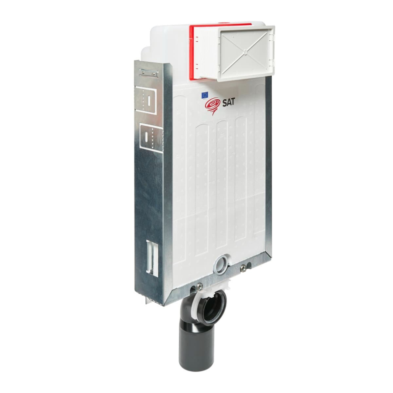 Ideálna pre inštaláciu závesného WC, ponúka adaptabilné kotviace nohy pre stabilnú montáž, obsahuje dávkovač wc tabliet, a špeciálne funkcie ako pre závesné wc. Kompatibilita s ovládacími tlačidlami SAT umožňuje jednoduchú personalizáciu, čo robí tento modul vhodným pre moderné kúpeľne.