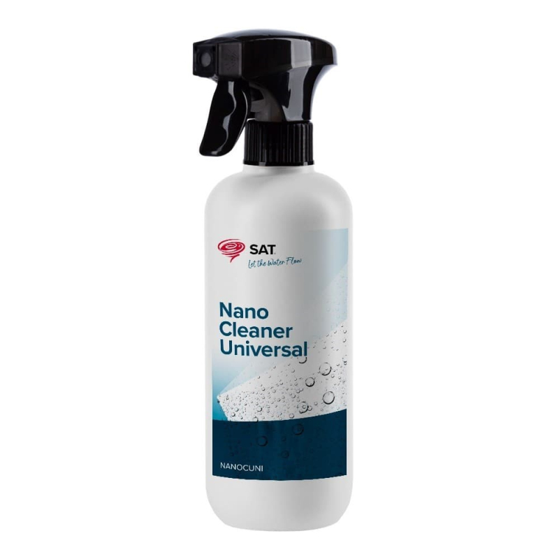 SAT nano čistič univerzál je univerzálny čistič s obsahom nanočastíc, vhodný pre každodennú údržbu neporézneho materiálu ako napr. sklo, keramika, plast, kov, lakované povrchy, lamino atď.