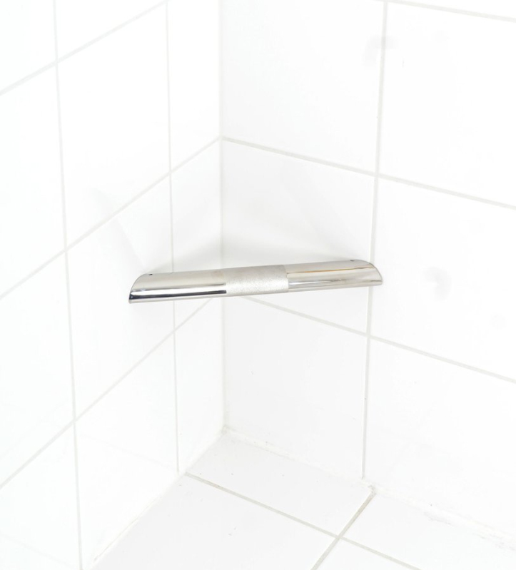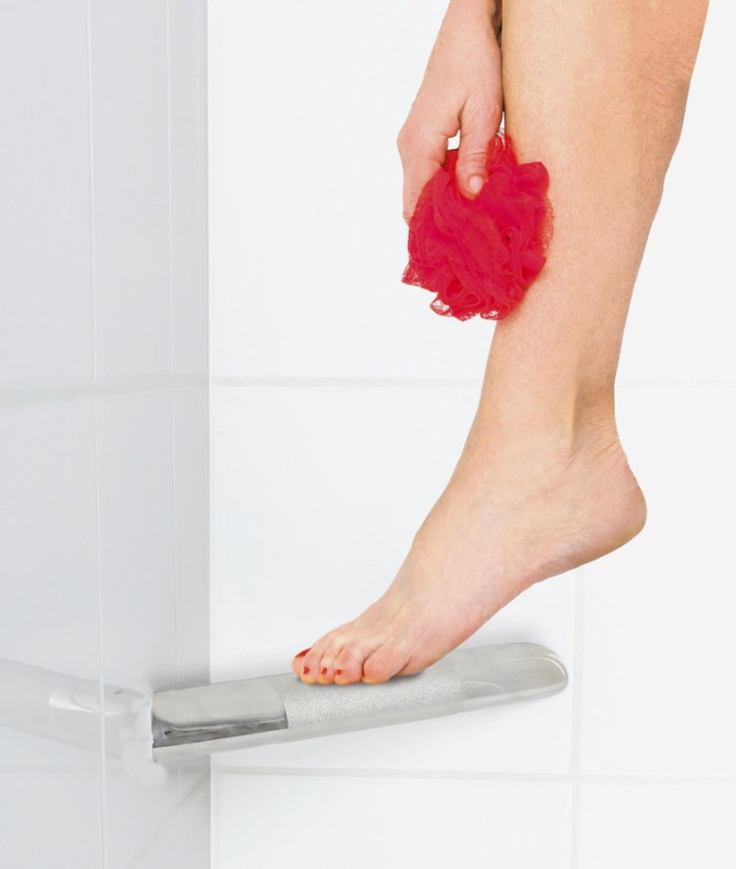 Nástenná opierka nôh pri holení, s protišmykovým povrchom, nerez lesk