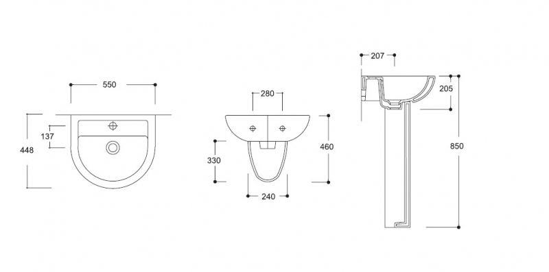 Nástěnné umyvadlo COMPACT 55 - Včetně, Bez sloupu