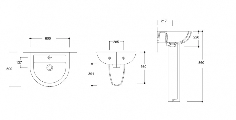 Nástěnné umyvadlo COMPACT 60 - Včetně, Bez sloupu