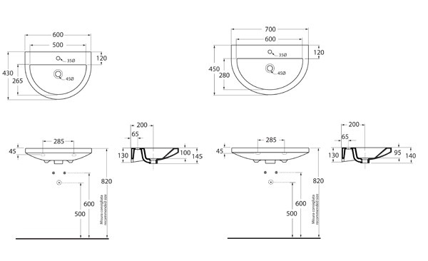 Nástěnné umyvadlo THIN 70 × 45 cm - 700 x 450 x 140 mm