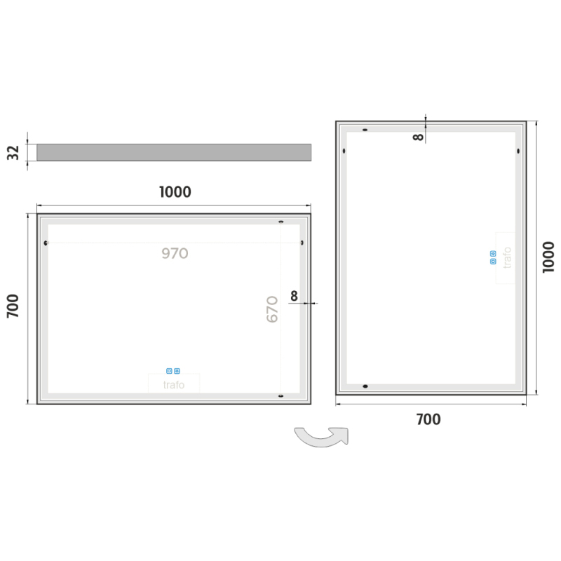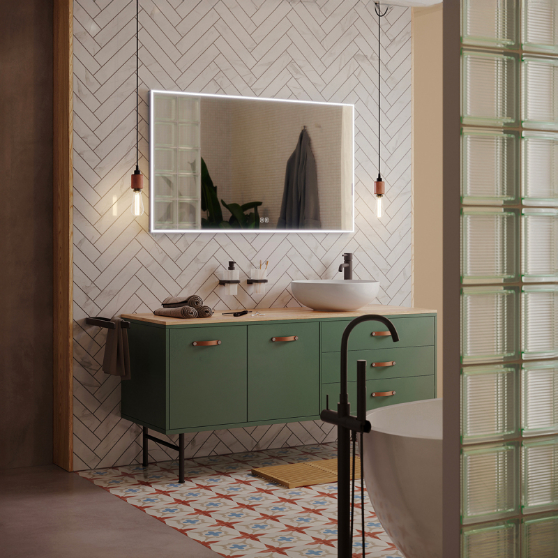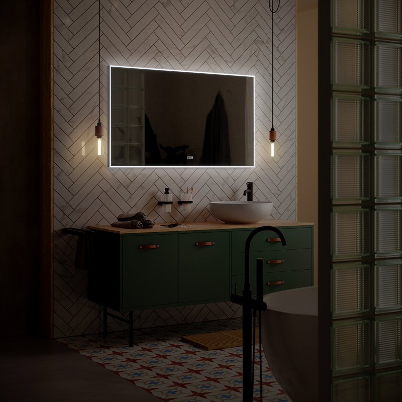 Zrkadlo do kúpeľne 100x70 cm s osvetlením, čiernym rámom, dotykový senzor je skvelým doplnkom do kúpeľne. Zrkadlá do kúpeľne NIMCO vynikajú kvalitným spracovaním a moderným dizajnom. Osvetlenie zaisťujú výkonné LED diódy po celom obvode zrkadla zakryté 8 mm rámčekom. Konštrukcia z hliníkového rámu 32x19 mm, sklo zrkadla s hrúbkou 5 mm. Pripojenie 220-240 V. Zapínanie / vypínanie / ovládanie dotykovým senzorom. Možnosť nastavenia farebnej teploty svietenia a intenzity svietivosti. Životnosť LED diód je až 50 000 hodín. Ochrana IP 44. Súčasťou zrkadla je káblová spojka, IP 44. Kúpeľňové podsvietené LED zrkadlo Životnosť diód až 50 000 hodín Príkon W Možnosť nastavenia farebnej teploty od 3000 - 6500 K Možnosť nastavenia intenzity svietivosti Zrkadlo má pamäť na klasický kolískový vypínač v kúpeľni podobne ako aj iné svietidlá Lumen Čierny rám