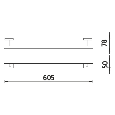 Držák na ručníky. Délka 605 mm. Vnitřní šíře pro ručníky 500mm.