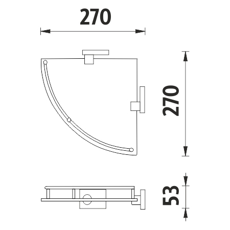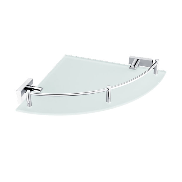 Police rohová s ohrádkou. Matované sklo. Rozměr 27x27cm.