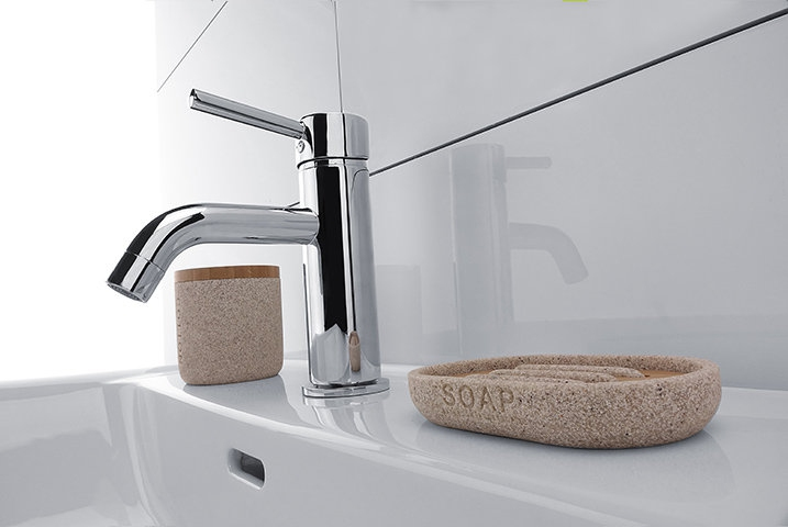 Barva pískově béžová. Materiál polyresin, bambusové dřevo.