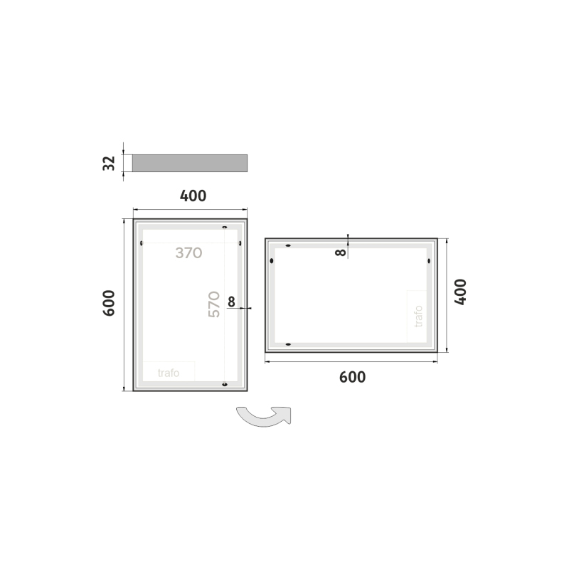 Nimco Séria 8000 ZP 8000 LED zrkadlo 400x600 rám hliníkový