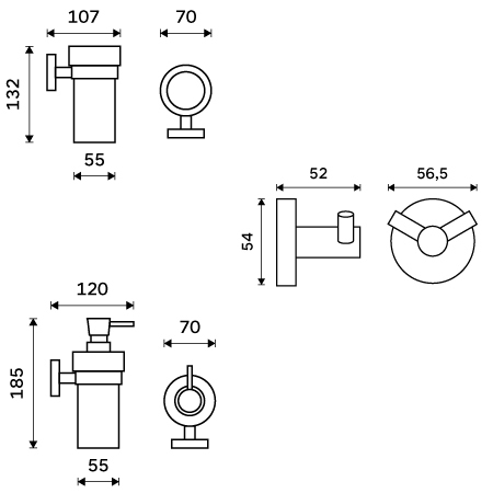Súprava nástenných kúpeľňových doplnkov - dávkovač mydla, držiak kefiek, dvojháčik na uteráky je skvelým doplnkom do kúpeľne. Táto sada kúpeľňových doplnkov obsahuje nasledujúce výrobky NIMCO zo série UNIX čierny: Dávkovač tekutého mydla UNC 13031W-T-90 Dávkovač na tekuté mydlo s objemom 250 ml. Nádobka z matného skla. Pumpička mosadz/čierny mat 1 ks. Držiak na kefky UNC 13058W-90 Nástenný držiak s pohárom na kefky. Pohárik z matného skla 1 ks. Dvojitý háčik na uteráky UNC 13053-90 Dvojitý háčik na uteráky, župany a pod. Materiál čierny mat 1 ks. Sada kúpeľňových doplnkov kúpeľni pristane oveľa viac, pokiaľ zvolíte aj ďalšie doplnky série Unix čierny z ponuky kúpeľňových a WC doplnkov NIMCO.