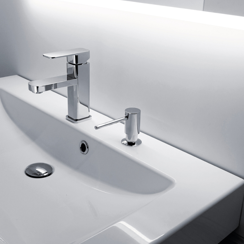 Vstavaný dávkovač na tekuté mydlo, dezinfekčný gél alebo prostriedok na umývanie riadu. Hlava pumpy priemer 30mm.