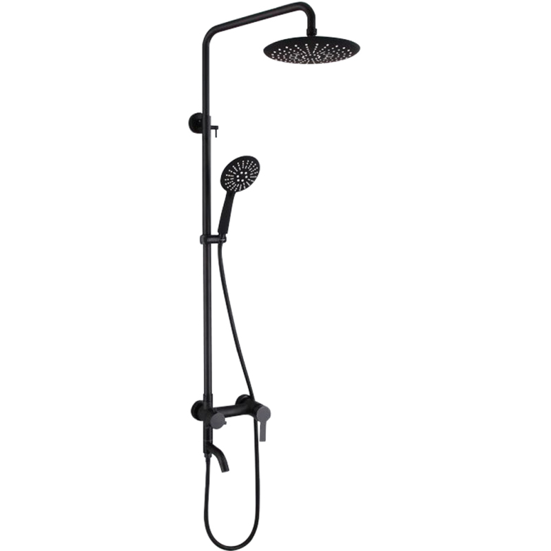 NIORO - Nástenný sprchový stĺp Ennio - vaňová otočná batéria - čierna matná