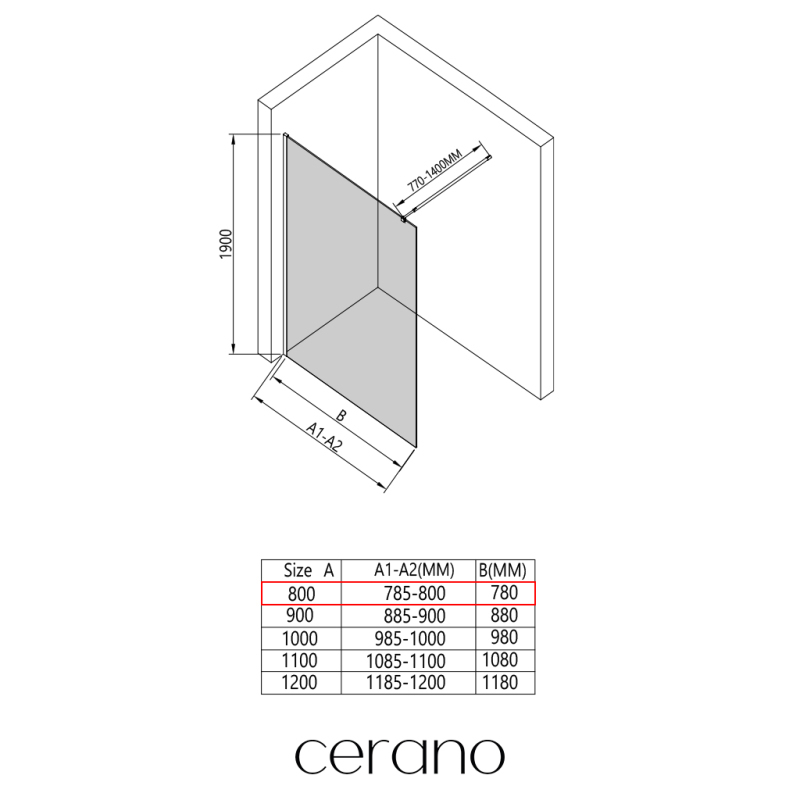 CERANO - Sprchová zástena Walk-in Opal Ľ/P - 6 mm - chróm, transparentné sklo - 80x190 cm