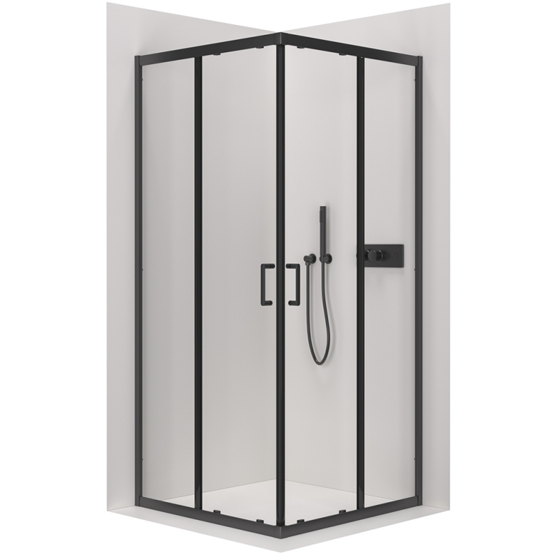 Čierne prvky dodávajú moderný a univerzálny vzhľad, ktorý dobre vyzerá v akomkoľvek štýle vašej kúpeľne. Sprchovací kút má univerzálny profil, ktorý je možné namontovať vpravo alebo vľavo .