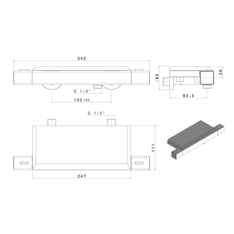 DIMY nástenná sprchová termostatická batéria, chróm (UN57155) DM245