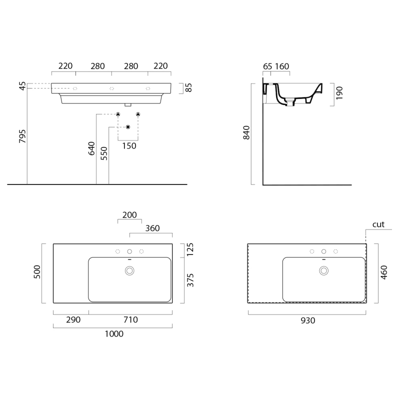 KUBE X keramické umývadlo 100x47cm, s odkladacími plochami, bez otvoru, biela 94519011