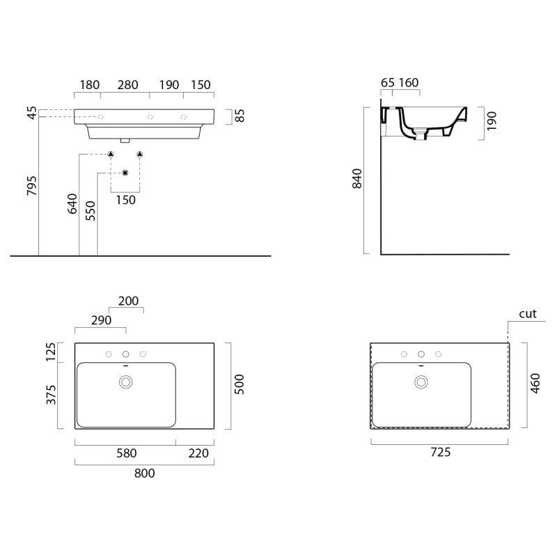 NUBES keramické umývadlo 80x50cm, s odkladacou plochou vpravo, biela mat