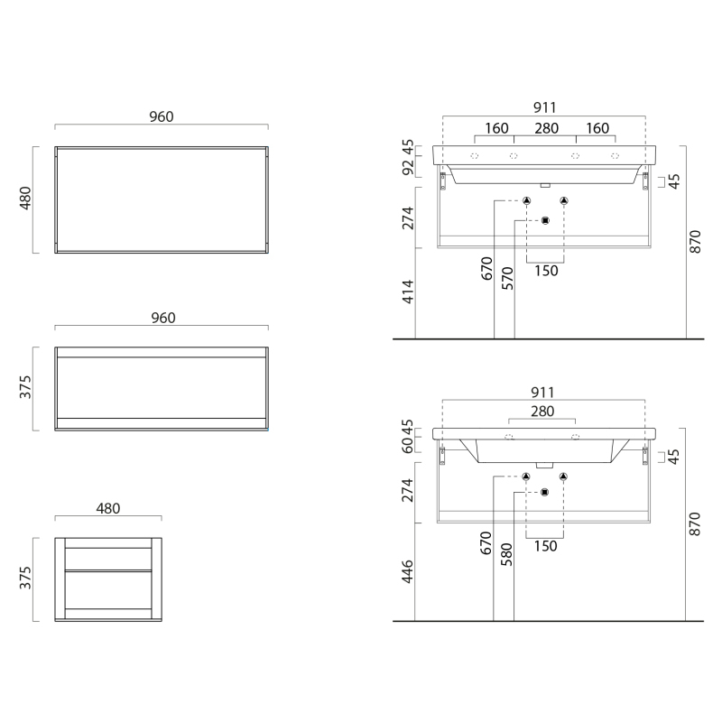 NUBES/NORM konštrukcia pod umývadlo 100x50cm, čierna mat MSN10028