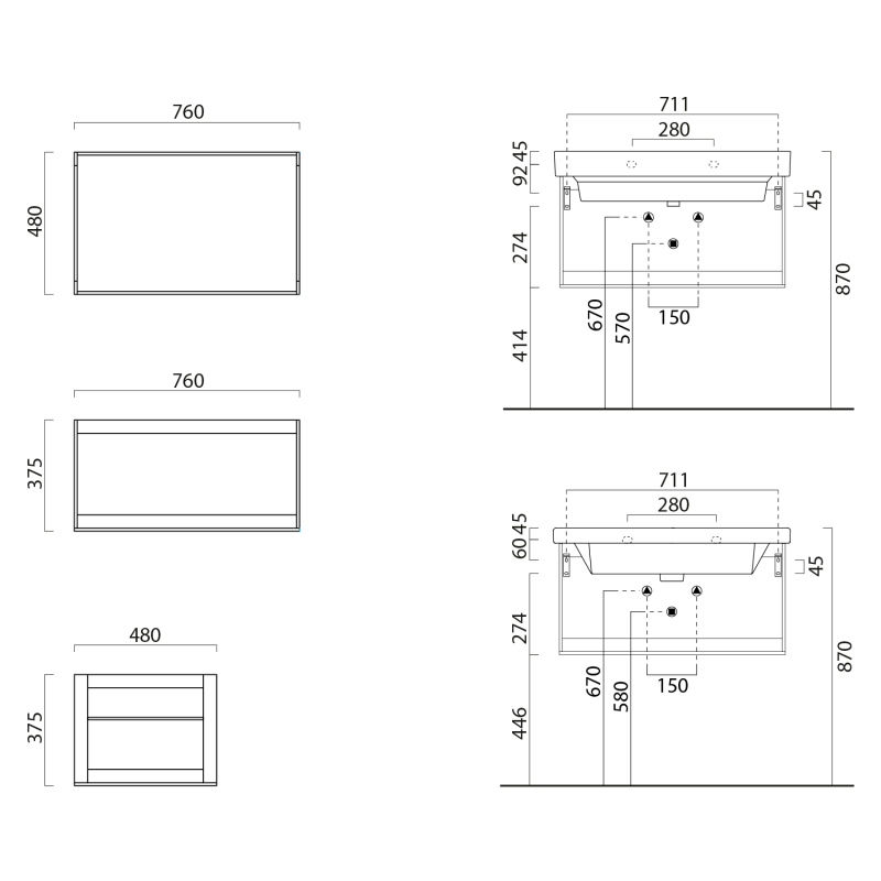 NUBES/NORM konštrukcia pod umývadlo 80x50cm, čierna mat MSN8028