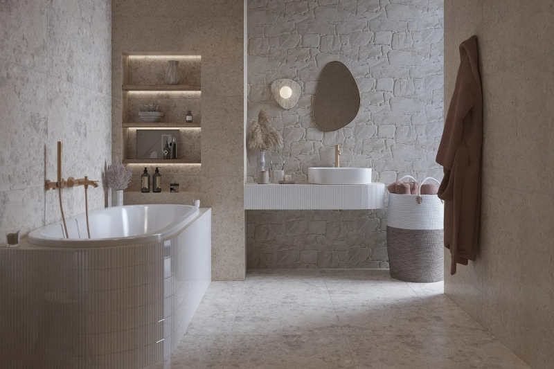 Mrazuvzdorné. Obklad v prevedení crema av imitácii kameňa a hrúbke 10,7 mm s matným povrchom. Vhodné do interiéru aj exteriéru. S malými rozdielmi v odtieni farieb, štruktúry povrchu a kresby.