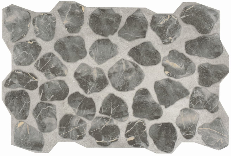 Mrazuvzdorné. Obklad vo farbe gris av imitácii kameňa a hrúbke 13 mm s matným povrchom. Vhodné do interiéru aj exteriéru. S malými rozdielmi v odtieni farieb, štruktúry povrchu a kresby.