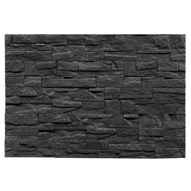 Mrazuvzdorné. Obklad vo farebnom prevedení antracit av imitácii kameňa a hrúbke 17 mm s reliéfnym povrchom. Vhodné do interiéru aj exteriéru.