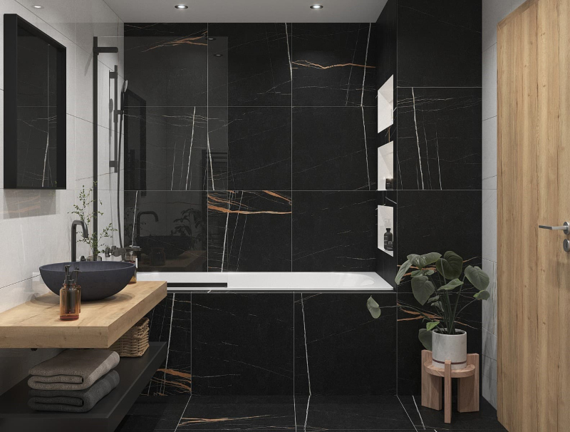 Rektifikované. Obklad v bielej farbe av imitácii mramoru o rozmere 29,8x59,8 cm a hrúbke 8 mm s lesklým povrchom. Vhodné iba do interiéru. S veľkými rozdielmi v odtieni farieb, štruktúry povrchu a kresby.