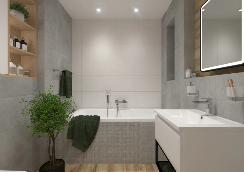 Obklad vo farbe blanco av designe cementu s matným povrchom. Vhodné iba do interiéru.