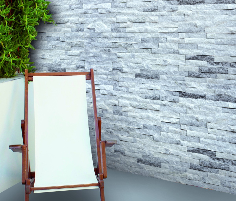 Obklad z pravého prírodného kameňa v šedej farbe vo formáte 15x55 cm s matným povrchom.