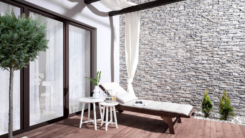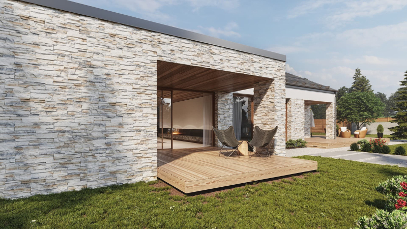 Mrazuvzdorné. Obklad vo farebnom prevedení soft grey av imitácii kameňa a hrúbke 12-24 mm mm s reliéfnym povrchom. Vhodné do interiéru aj exteriéru.